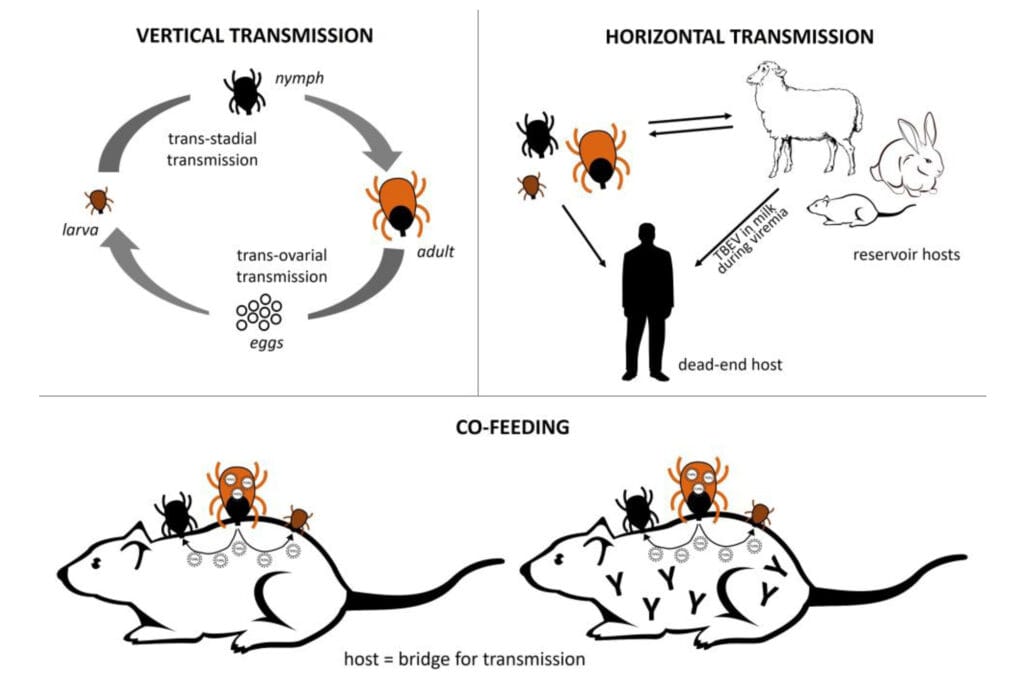 Transmission occurs through biting, contaminated food, direct contact, and even indirectly via water.